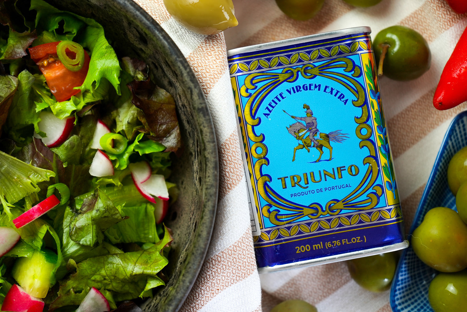 Olivenöl Triunfo 200ml: Ein hochwertiges, natives Olivenöl extra aus Portugal, das mit seiner milden, fruchtigen Note jedes Gericht verfeinert. Ideal für Salate, Gemüse oder als Dip zu frischem Brot.