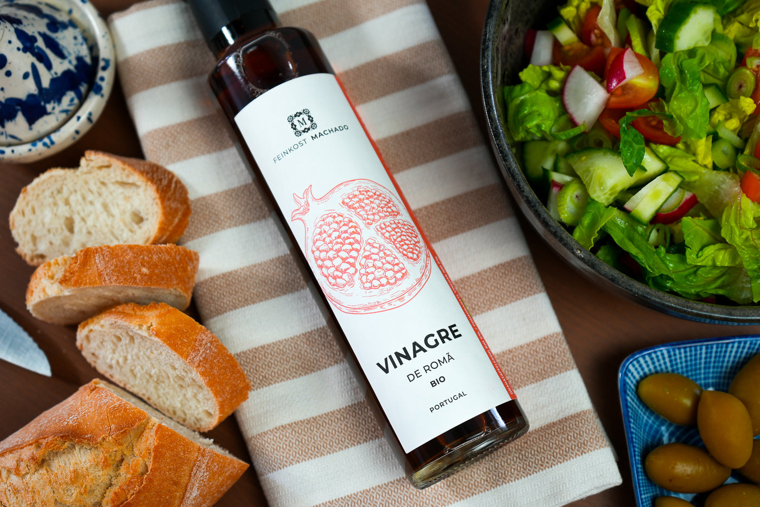 BIO Granatapfelessig: Ein fruchtiger und aromatischer Essig, der mit seiner angenehmen Säure und frischen Granatapfelnoten jedem Salat oder Gericht eine besondere Note verleiht.
